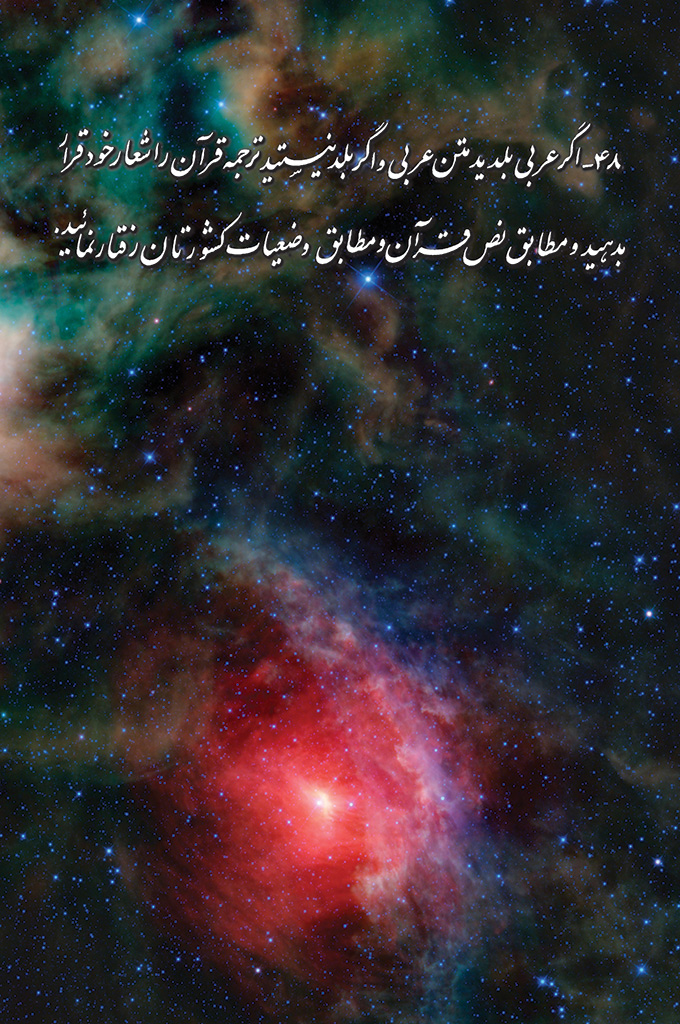 48- قرآن را شعار خود قرار بدهید. راه راست بدون امتیاز 1202 بازدید اشتراک گذاری 48- اگر عربی بلدید متن عربی و اگر بلد نیستید ترجمه قرآن را شعار خود قرار بدهید و مطابق نص قرآن و مطابق وضعیات کشورتان رفتار نمایید. مطلب قبلی مطلب بعدی دیدگاه ها ثبت دیدگاه