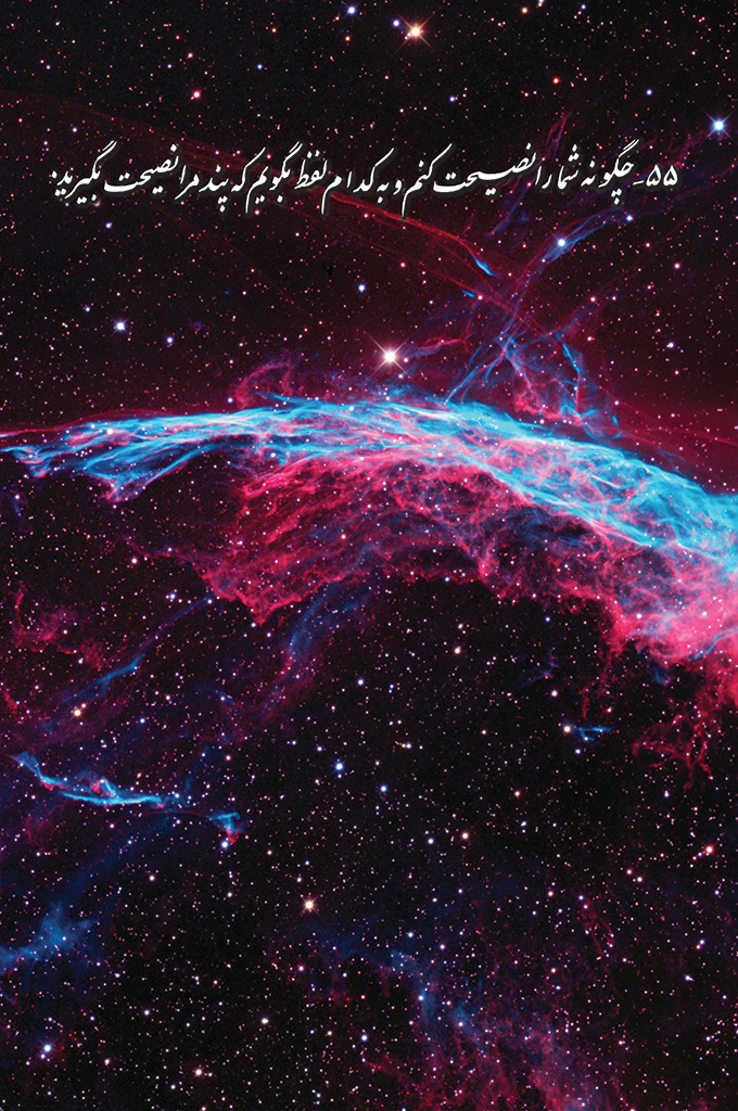 55- پند مرا نصیحت بگیرید. راه راست بدون امتیاز 1467 بازدید اشتراک گذاری 55- چگونه شما را نصیحت کنم و به کدام لفظ بگویم که پند مرا نصیحت بگیرید. مطلب قبلی مطلب بعدی دیدگاه ها ثبت دیدگاه